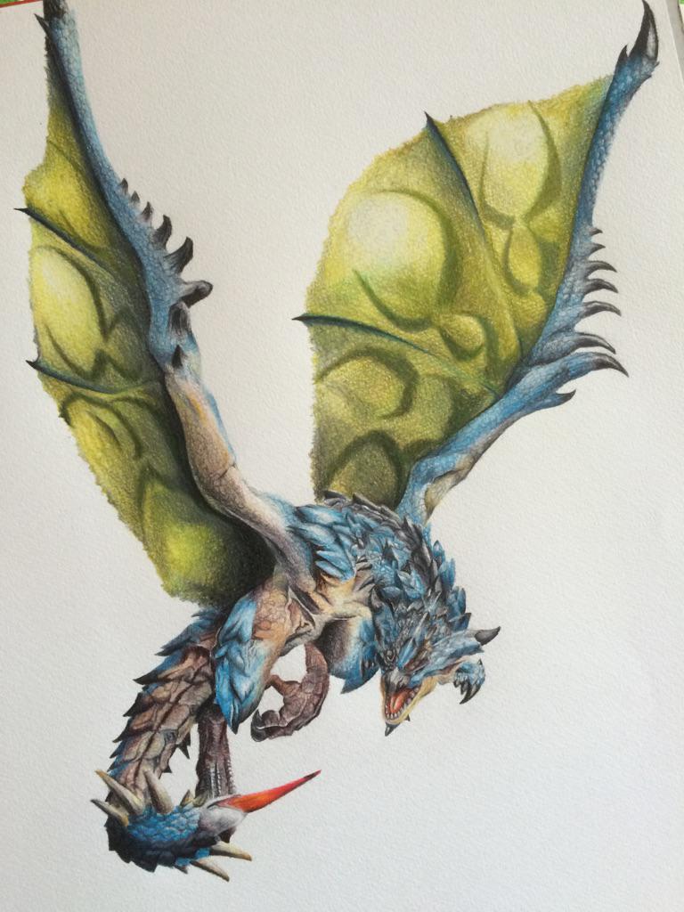 にょ ジンオウガ亜種描きました 2年ぶりの模写投稿です よかったらいいねお願いします 模写 色鉛筆 モンハン モンハンライズ